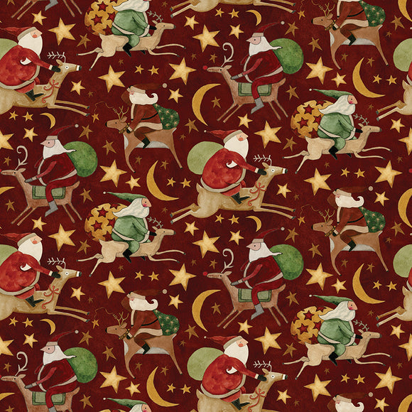 Up on the Housetop Santa Rides Cranberry, Christmas Fabric, Quilting Fabric